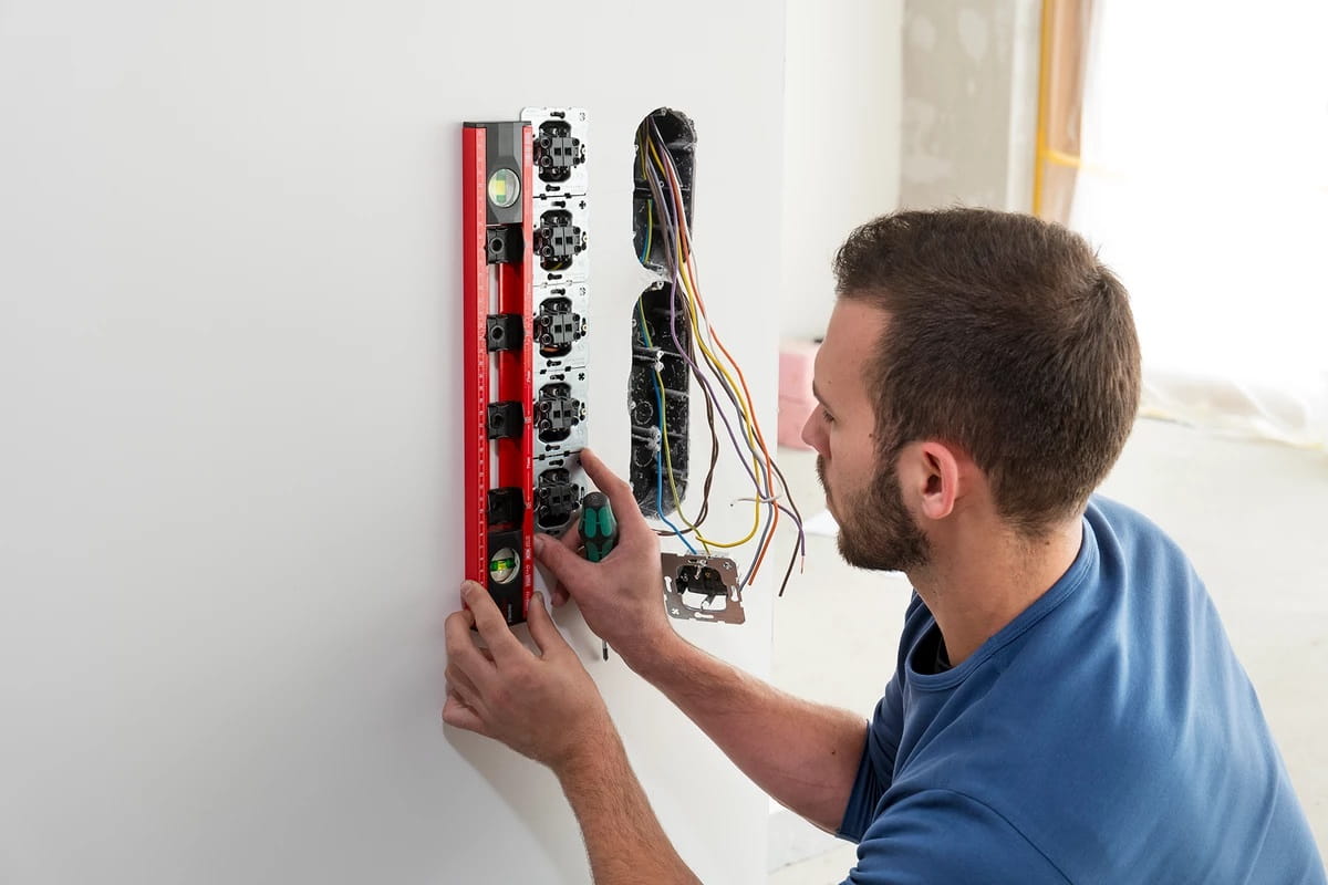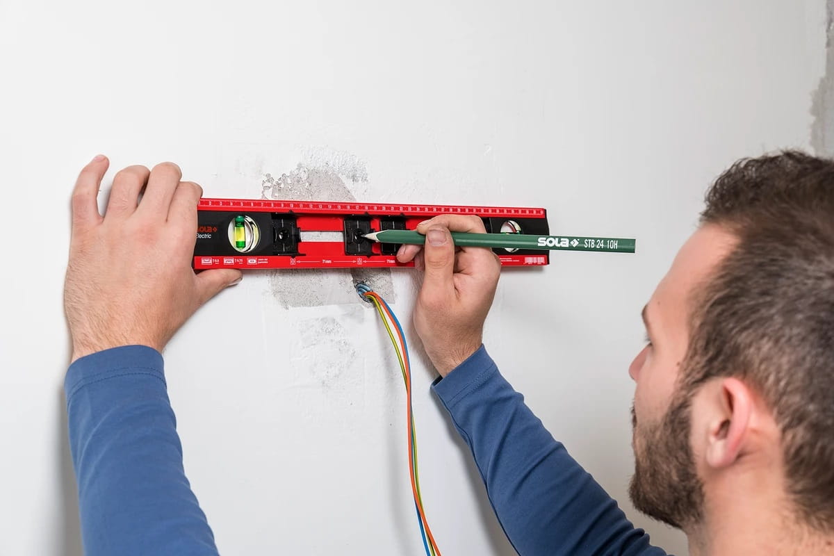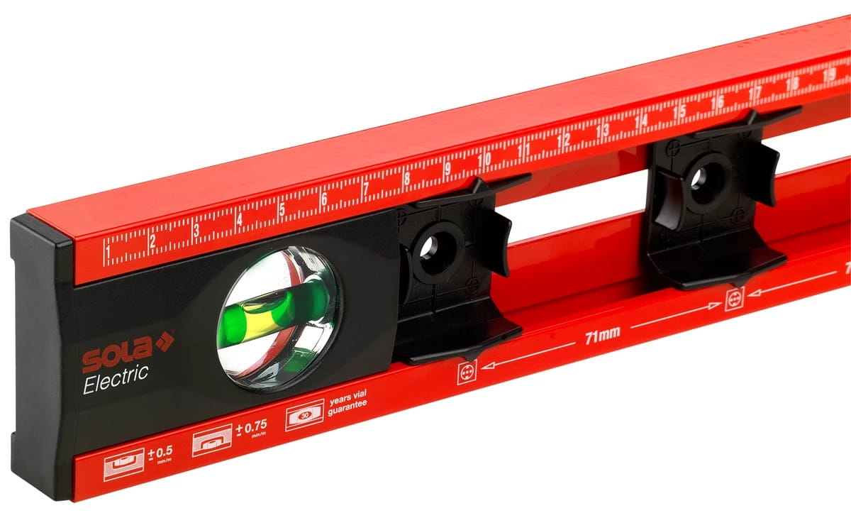 Specjalna poziomica do prac elektrycznych jest bardzo łatwa i wygodna w użyciu. Dzięki skali dla elektryka z 4 oznaczeniami gniazd w rozstawie 71 mm, gniazda i przełączniki można mierzyć i oznaczać w jednym kroku roboczym.