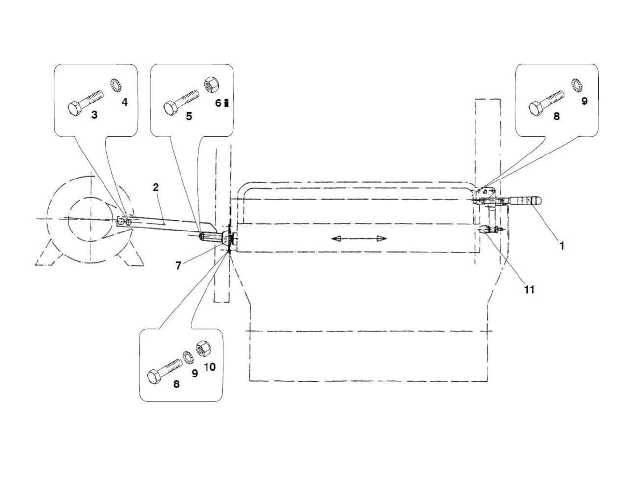 Śruba w zestawie z dwiema nakrętkami.