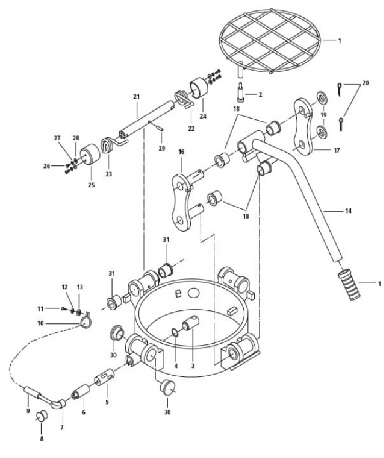 Sworzeń (na schemacie oznaczony nr 15) stanowiący element zawiasu dekla zbiornika w maszyncach Brinkmann DC260/45, BMS Worker No1.